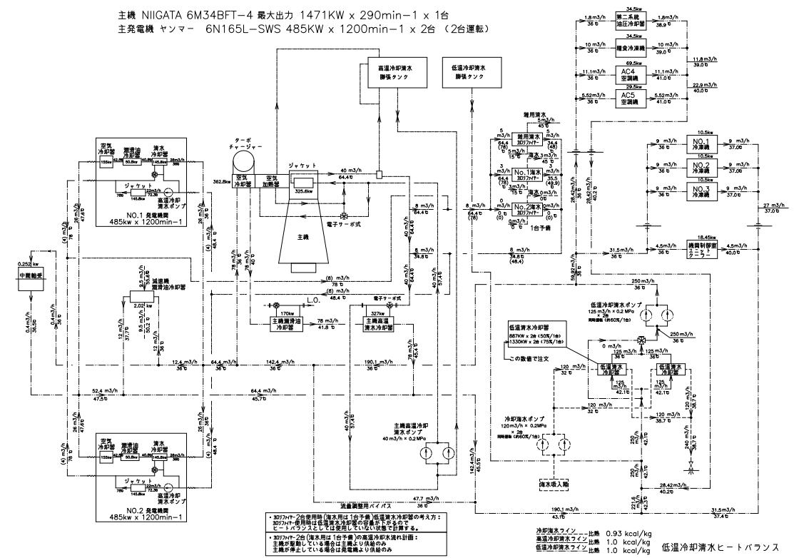 海水温度は船の設計として一般的に32℃としているので冷却清水温度はおのずと32℃以下にはならない、効率も有り