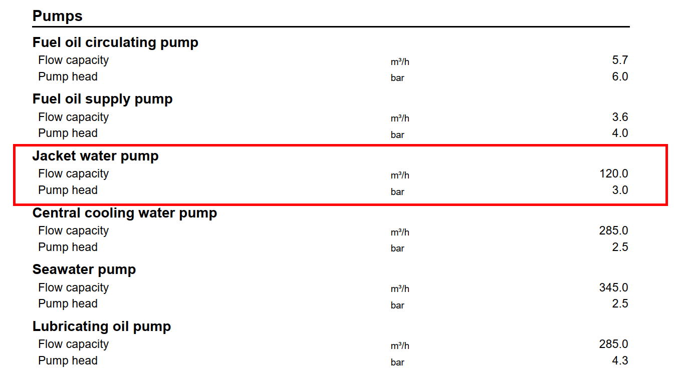例えば上記はMAN B&Wの要求値で、ポンプ要目は